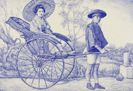 penna a sfera su carta pergamena / ballpoint pen on parchment paper, 50 x 36 cm (da / after Kusakabe Kimbei)