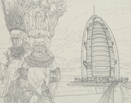 penna a sfera, inchiostro, tempera su cartoncino / ballpoint pen, ink, tempera on board, 45 x 70 cm