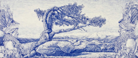 penna a sfera su carta pergamena / ballpoint pen on parchment paper, 30 x 70 cm
