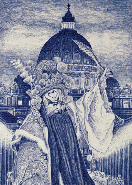 penna a sfera su carta pergamena / ballpoint pen on parchment paper, 34 x 45 cm