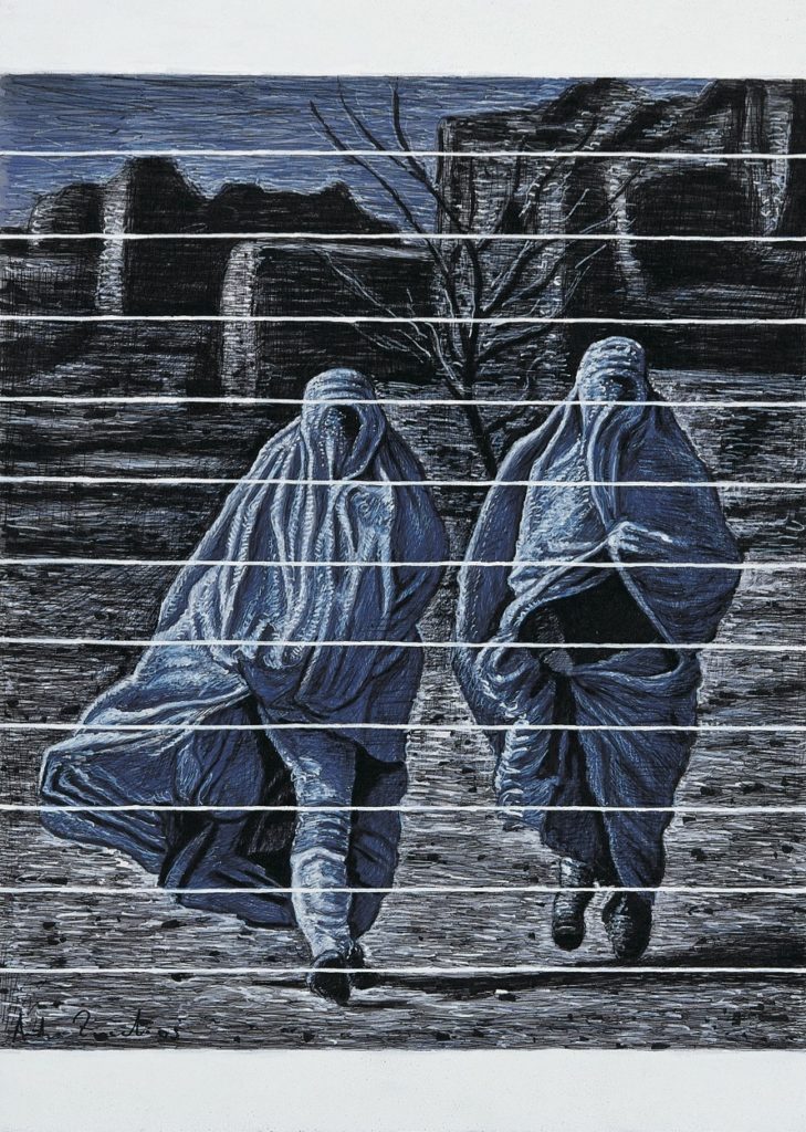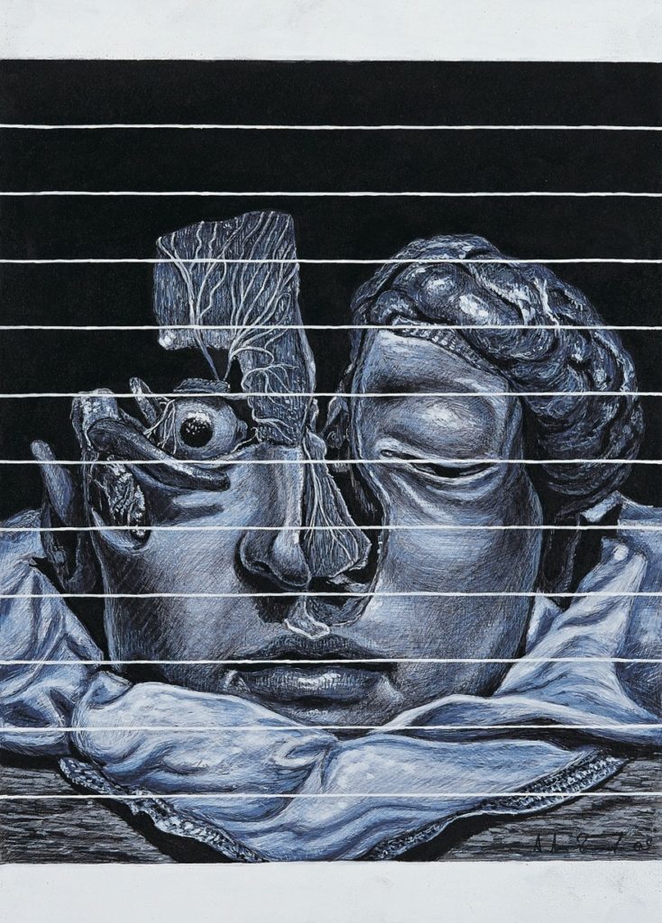 penna a sfera, inchiostro e tempera su cartoncino / pen, ink, tempera on board, 35 x 25 cm